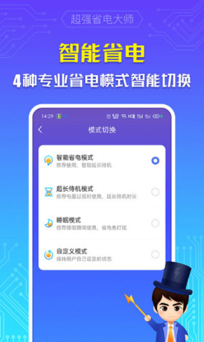 超强省电大师是一款可以帮助大家保持手机电池健康的软件,现在的手机电池真的不咋样,只要系统更新了什么的,电量就掉的厉害,有了这款超强省电大师让你不再需要充电宝,超强待机,有需要的朋友赶紧下载吧。