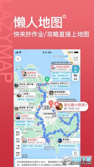 不仅城市有懒人地图,旅游景区或商业街也适用懒人地图,地图上也有强烈推荐线路,怎么去,如何去玩,一目了然。例如: