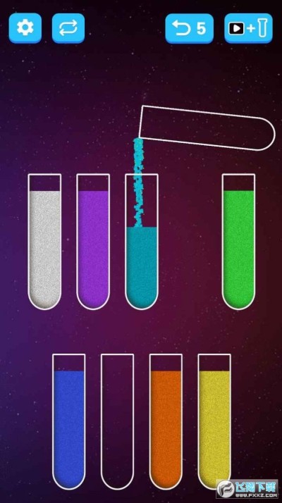 3.把颜色一样的沙子倒入到试管里就可以能够闯关成功,非常的有趣味性。