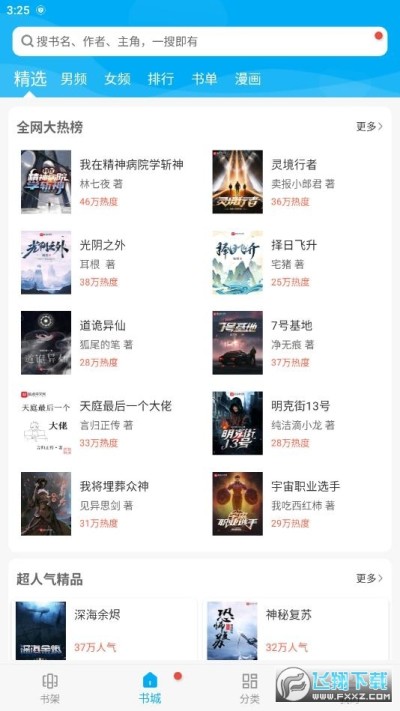 3、全网正在热搜的小说和漫画都可以显示在主页上,大家每次极速查看。