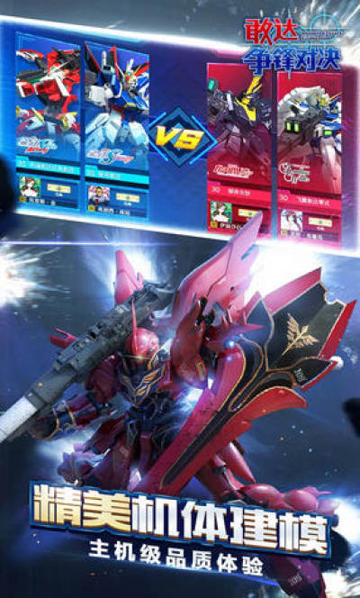 实时竞技、公平对决、跨服骁战、天梯争夺!王牌机师、历战机体,你敢来我便敢战!挑战极限,登顶之巅,与更多敢达的粉丝们一起争锋对决!
