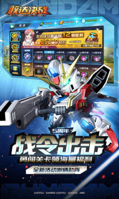 敢达决战充值3折版是一款国内首款敢达手游,此版为真正充值3折折扣平台,超多有趣玩法,海量机师机体等你来收集,组建自己的战队来参与战斗!喜欢的小伙伴赶紧来下载吧!