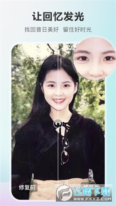 它支持Al修复2人以内面部,一键还原高清的人像照片。点击免费人像修复,然后选择照片,软件就能自动进行修复。