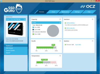 SSD Guru具有操作系统优化、SSD优化、健康度监控、仪表板等六大功能。SSD Guru专属于OCZ SSD,可适用于OCZ ARC 100、Vertex 450/460、Vector 150/180、AMD Radeon R7、R350 PCIe SSD。