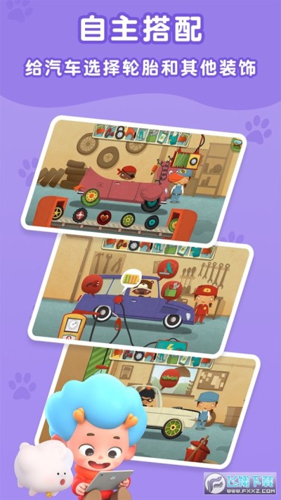 引导儿童使用工具清清洗和装饰汽车,并让干净完美的小汽车跑起来。