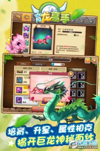 通过对各种萌系龙宠的收集,将整个天空牧场经营起来。看到这些五彩斑斓,形态各异,属性各异的龙宝,还等什么,快快领取专属你的龙宝宝吧!
