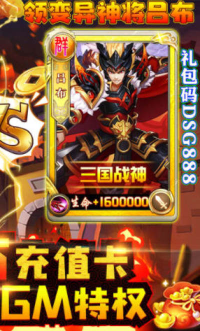 2、输入礼包码DSG666、DSG888,免费领取变异神将·吕布、时装·梦幻家仆