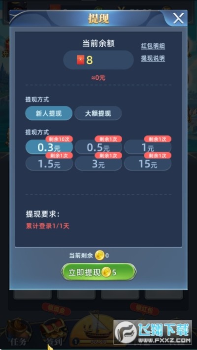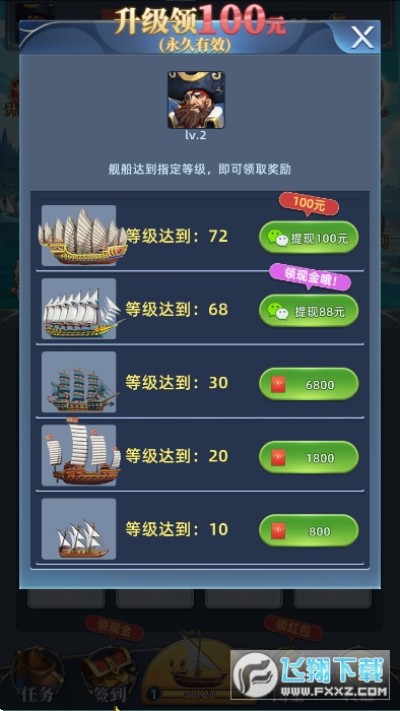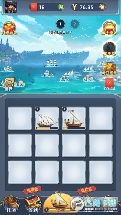 富甲七海红包版游戏是一款趣味的合成赚红包游戏,游戏以航海冒险主题为主,游戏中玩家上线即可领取红包福利,游戏玩法简单易上手,轻松点击合成你的航海战舰即可领取超值红包,对游戏感兴趣的话不妨点击下载!