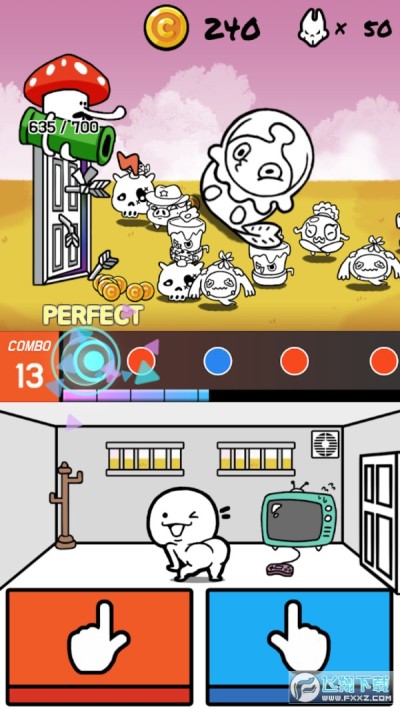 嘤嘤嘤小英雄是一款画风非常有趣的休闲节奏手游,游戏中玩家只需要点击两个按键就能消除敌人,保护自己的家园,这需要你拥有非常好的节奏感,保持不断按对正确的按钮,这样就能一直保持消除,让敌人无法靠近你的门,游戏中玩家获得胜利解锁的金币还能购买道具提升通关概率。