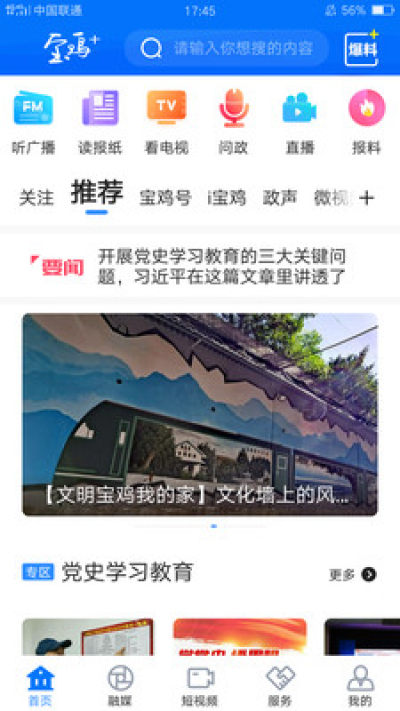宝鸡Plus客户端以技术引领为根本,媒介资源和生产要素深度融合,通过内容聚合、生产赋能、共建共享,实现信息内容、 技术应用、平台终端、人才队伍和管理服务共享互通,迈进生活化综合服务平台。