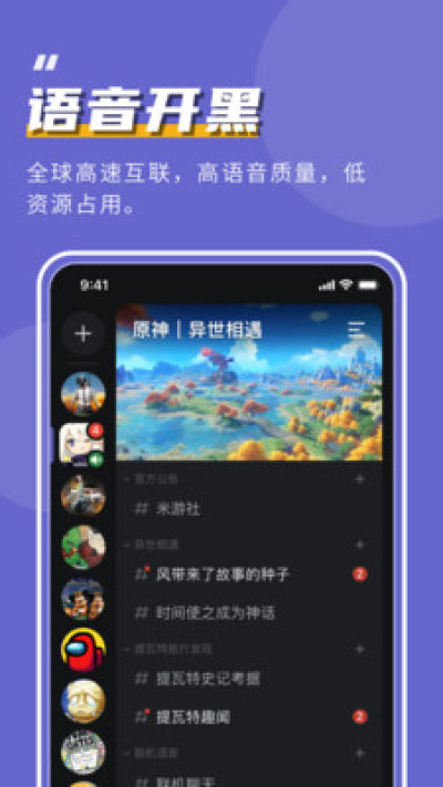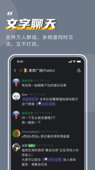 【语音开黑】高质量的语音功能,稳定流畅,低占用,单频道内最多可允许25人同时发言。
