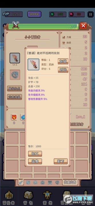 目标是传说级冒险者是一款好玩的像素冒险闯关游戏,游戏采用放置玩法,玩家可以轻松打怪升级装备,学习新技能,目标是传说级冒险者可以通过挖矿和冒险加强装备属性。