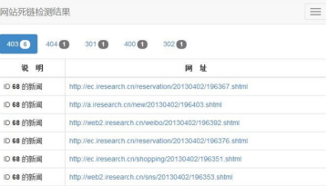啄木鸟网站死链检测工具可以直接读取数据库数据检测死链,可以更高效的检测网站死链。采用下图所示html5方式显示检测结果。