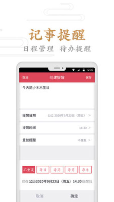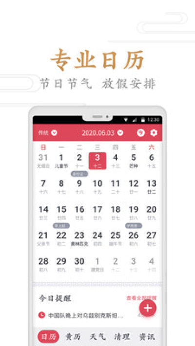 适合中国人的万年历,集日历、农历、记事、提醒于一身的生活助手。