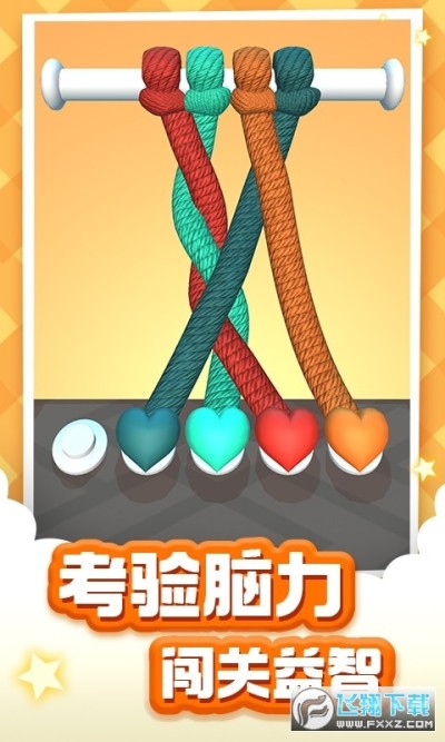 2、绳索达人游戏是一款休闲益智解绳索游戏,游戏玩法简单,玩家需要根据绳索的打结情况,进行观察,找寻又快又好的解绳索方法,只有成功解开绳索才能够进入下一关卡,游戏关卡比较多,还有游戏道具可以使用,随时随地可以,开发智力,赶紧下载玩起来吧