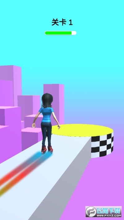 是一款趣味十足的闯关冒险类游戏,卡通的画面风格,简洁的游戏界面,精美的游戏画面,还有多样化的趣味内容等你来体验,在游戏中玩家将操控一个踩着轮滑的小女生去进行闯关,在闯关的过程中,你会慢慢加速直到冲过终点!