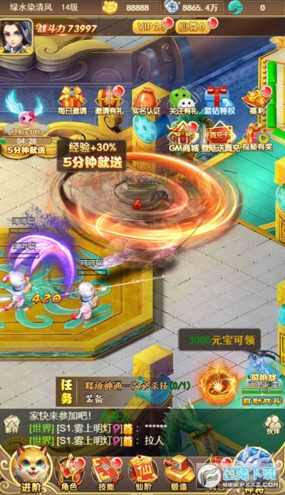 1、上线壕送10000充值,免费升级到满级SVIP5,尊享各种特权豪礼,免费领取神将、神宠、神装等超值大礼!