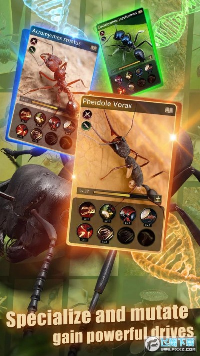 您可以通过孵化突变卵来获得功能强大的特殊蚂蚁。士兵蚂蚁和特殊蚂蚁的强大组合将使您的蚂蚁部队获得全面胜利。