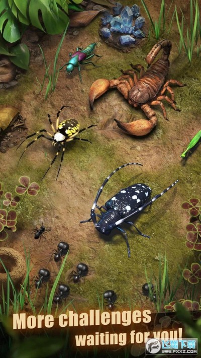 1、游戏中的画面都是非常的真实的,你会在这里见到不同种类的蚂蚁,还会见到一些其他的虫子生物。