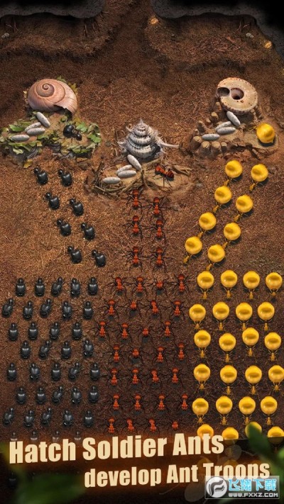 蚂蚁的数量代表着一个蚂蚁帝国的兴衰。为了发展您的蚂蚁帝国,您必须孵化尽可能多的蚂蚁。带领他们战斗,掠夺资源并扩大您的领土!
