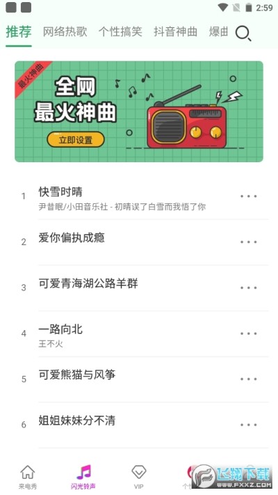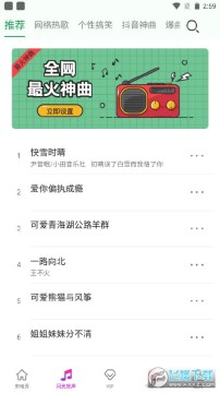 3、个性彩铃抖音热歌、影视金曲、欧美日韩应有尽有,更有新歌尝鲜榜,秀出风格,来电嗨起来