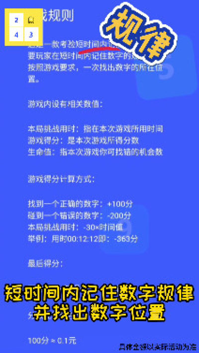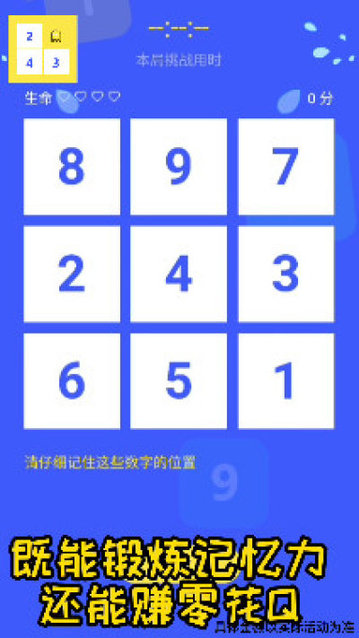 《我是闯关王领红包游戏》是一款考验玩家记忆力的手机赚钱类游戏。这款游戏以记忆数字的方式来主题,玩家在游戏中不仅可以锻炼记忆能力,还可以领取现金红包的奖励,感兴趣的小伙伴们赶紧下载体验吧!