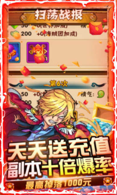 游戏完整还原动漫内容,以回合制战斗玩法为核心,玩家通过抽卡收集养成原著动画中角色来组成属于自己的海盗团,通过冒险、闯关等玩法强化自己的伙伴,在PVP对决中占据一席之地,脱颖而出成为最强海盗王。玩家在游戏过程中,不仅是作为主角组建海盗团从而踏上强者之路,也是对《ONE PIECE》动画的经典重温。