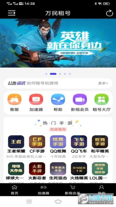 万民租号app是一款值得信赖的游戏账号的租借平台应用,为玩家提供了端游、手游、加速器、影视、音乐等高级账号。有了万民租号,您可以轻松实现:王者荣耀租号,CF租号、英雄联盟LOL租号、绝地求生吃鸡租号和飞车租号玩等,高端帐号即时体验!