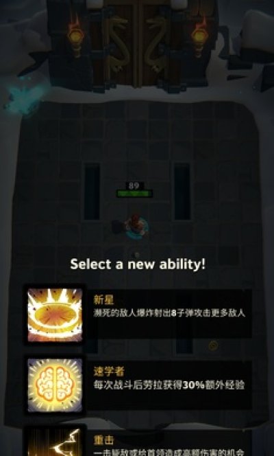 为了防止单调,人物每次升级可以在3项升级中任选一样,效果包括“跳弹”、“火弹”、“新星”、“剑气”又或者是其他类等等。
