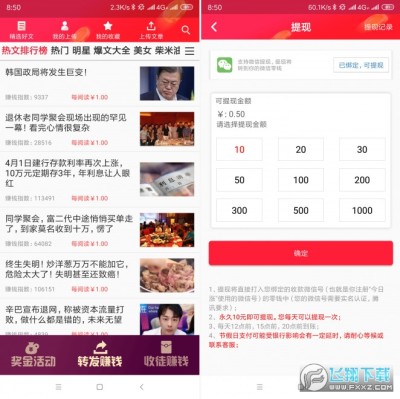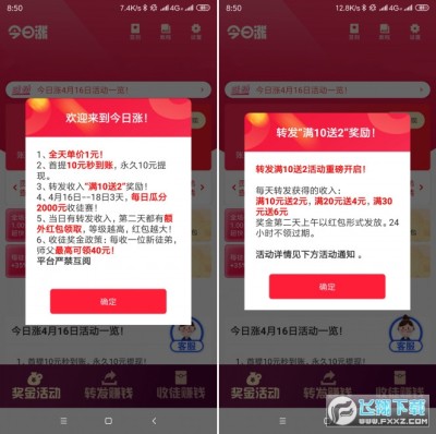 1、新人下载今日涨就送0.5元,转发文章单价全天1元,每天转发满10元额外送2元