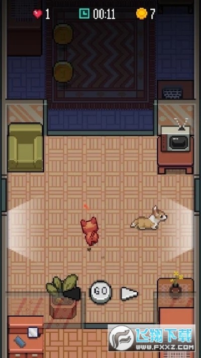 在本作中,你将操控可爱的猫猫沿路闪避狗狗、家俱等障碍,尽其所能的努力搜集金币与鱼来增加分数!