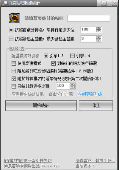 5 统计大型贴吧时,统计速度会越来越慢,这是正常的。