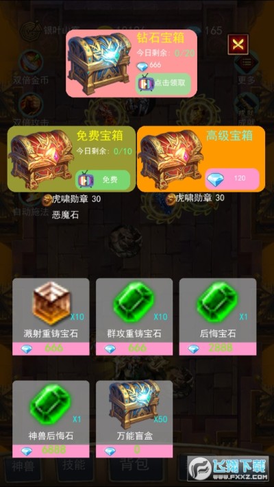 打开游戏后,去商店看一个宝箱广告,获取钻石后,直接购买神兽碎片,出战英雄,重复上边的刷刷刷。