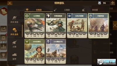 2、丰富多样的兵种,可实现防空、空降、工程建造等特殊功能,新增特种部队系统可以使用;
