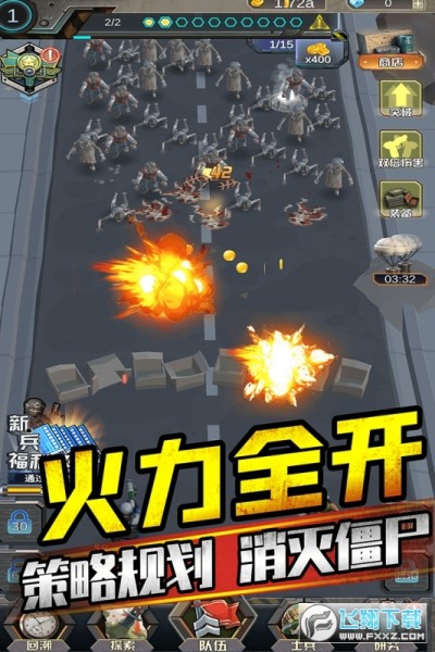 敌人来势汹汹,但是指挥官队伍还未成型,或者敌人太强太多战队实在无法抵御怎么办?别怕,兵从天降,你还有多种强大技能可以随时使用,分分钟消灭所有僵尸,合理搭配各个技能,让你势如破竹,无往不利!