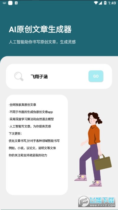 AI文章生成器app是一款能够让你制作伪原创的工具,只需要大家开头写一个不错的引导,就能让ai智能的写下去,为你的写作提供灵感,可以无压力,写作文,小说,议论文,公众号,网站站群文章等。