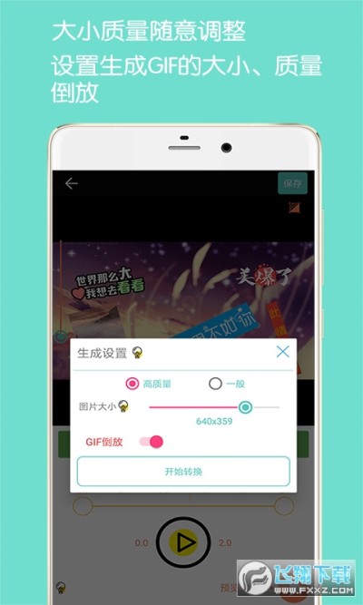 这不是简单的转GIF,在制作的过程中你可以随意添加你想要的图片,艺术文字,gif,表情到GIF中的任意位置和设置任意时间显示。你还可以调节GIF生成的像素大小,控制帧的播放速度(变快变慢),从而控制GIF的体积大小。