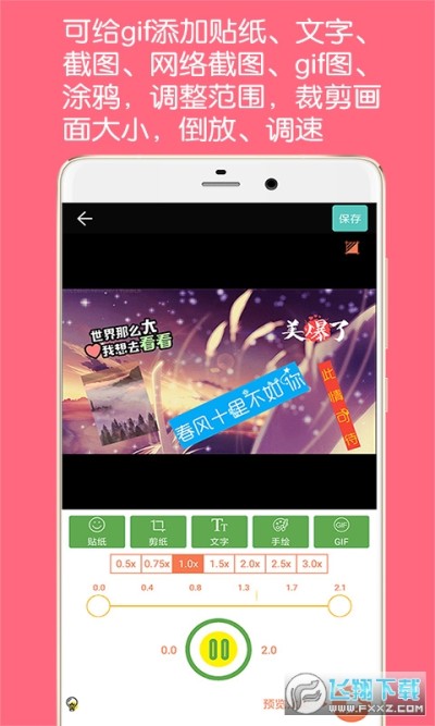 5、可添加任意数量的文字、贴纸、自定义图片、GIF图片到要制作的GIF中