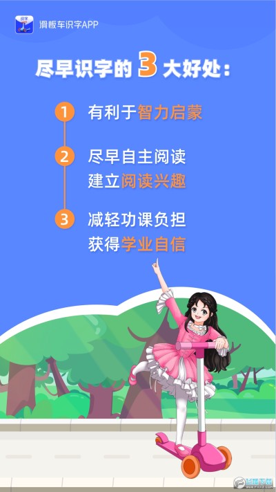 滑板车识字app是一款给3-8岁的孩子打造的手机趣味识字软件,这款软件上可以提供给孩子幼儿园启蒙还有幼升小衔接所需要的识字内容,在线可以直接选择相关的学习内容,还有趣味类的玩法学习哦,快来试试吧!