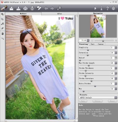 AKVIS OilPaint是一款可以将照片转换成油画作品的软件!可以独立运行,也可以作为Photoshop的插件来使用!程序采用了独特的算法,提供真实画笔的技术,让转换后的作品如同手工绘制的油画作品一样逼真!即使你不具备美术功底,利用这款软件,也可以让你变成一个艺术家!新版本提供了全新的3D笔刷!