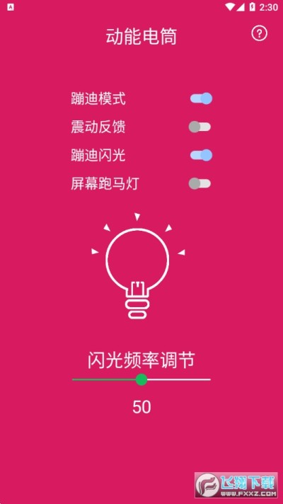 @大师兄丶 这些开发小编觉得真的是脑洞很大的,它结合了传统的普通模式加上一个有趣的蹦迪模式,安装包只有1MB左右,界面无任何的广告,简单但是比较实用有趣的手电筒。