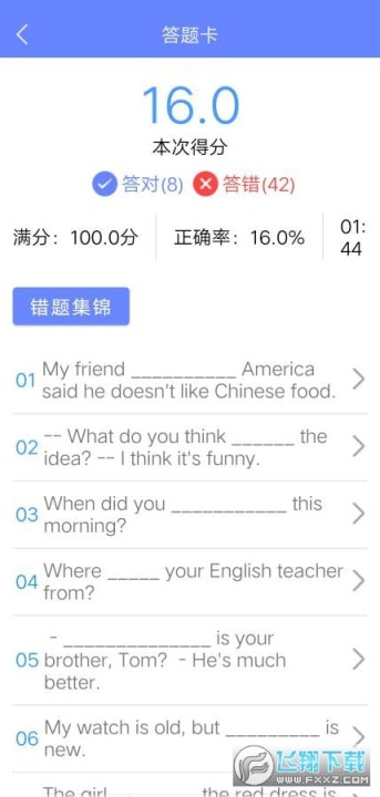 满分英语题库app是一款为中小学生提供的英语考试练习的题库app,汇集初中全年级的知识点,选择题等,为考试提供练习测试,给学员带来好的在线考试体验!