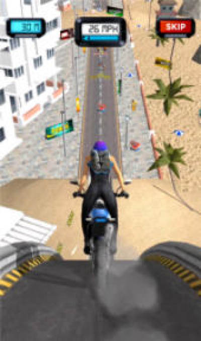 3、公路上多样化的道具等你收集,让飙车更加的刺激,需要注意的是摩托车会由于地形的变化而倾斜方向。