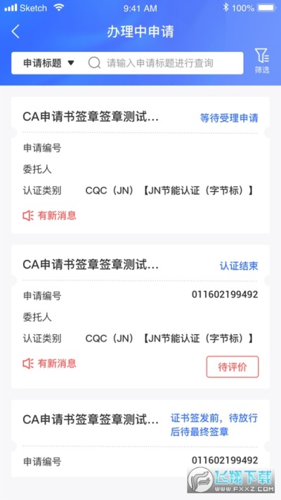 3. 认证通知服务:在线实时接收申请办理过程中CQC发给客户的各类通知,包括:申请受理、送样、工厂检查、费用结算、证书邮寄、证书处理等通知信息。