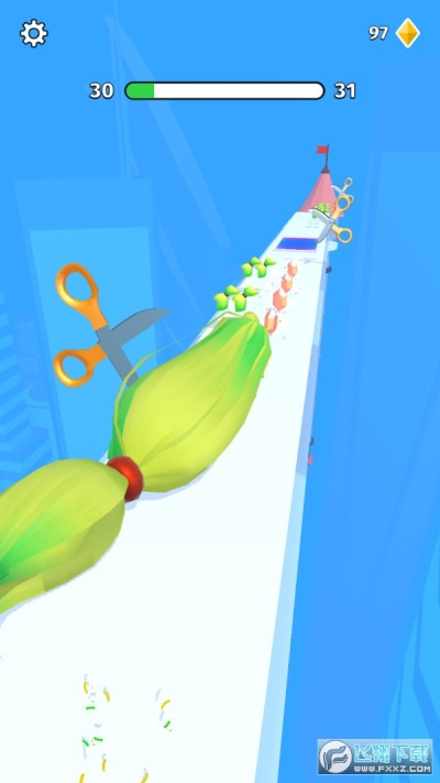 3、游戏的挑战难度也在增加,如果剪刀碰到了小姐姐的长发,小姐姐会很伤心的哦。