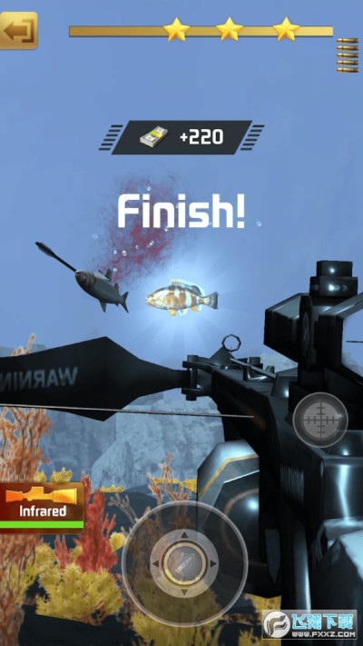 1、在深海中展开一场场刺激无比的射击过程,用你的深海武器来将各种鱼类全部消灭摧毁;