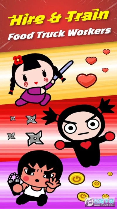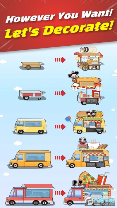 2.您可以升级和使用许多不同的餐车。游戏中的卡通界面相对可爱。