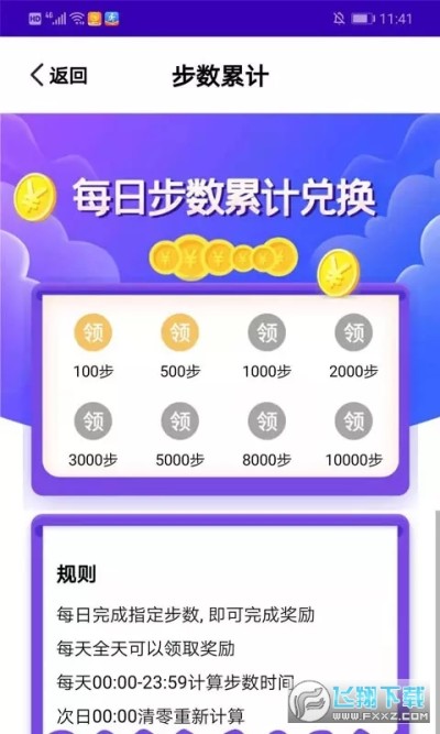 步数红包:步数分10档,每一档完成后可领取对应红包奖励,单日上限70000步。