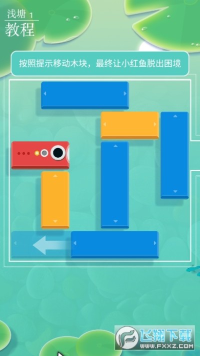 按照木块长度方向,移动小木块,最终让小红鱼逃出困境。