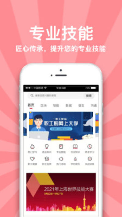 课程内容丰富多样,覆盖多行业、全岗位,整个职业生涯,学习板块包括热门学习、商业知识、专业技能、行业知识、终身学习、职工健康、职工名师、热门活动、学历提升、实战训练。帮助职工提升个人专业技能,综合素质,成为面向未来的产业精英。
